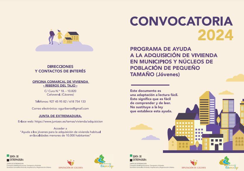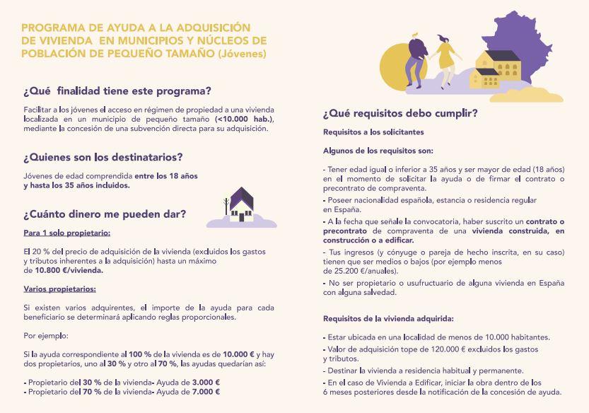 El día 25 DE JULIO de 2024 se abre el plazo de presentación de solicitudes para la concesión de ayudas para la ADQUISICIÓN DE VIVIENDA HABITUAL Y PERMANENTE EN MUNICIPIO O NÚCLEO DE POBLACIÓN DE PEQUEÑO TAMAÑO.