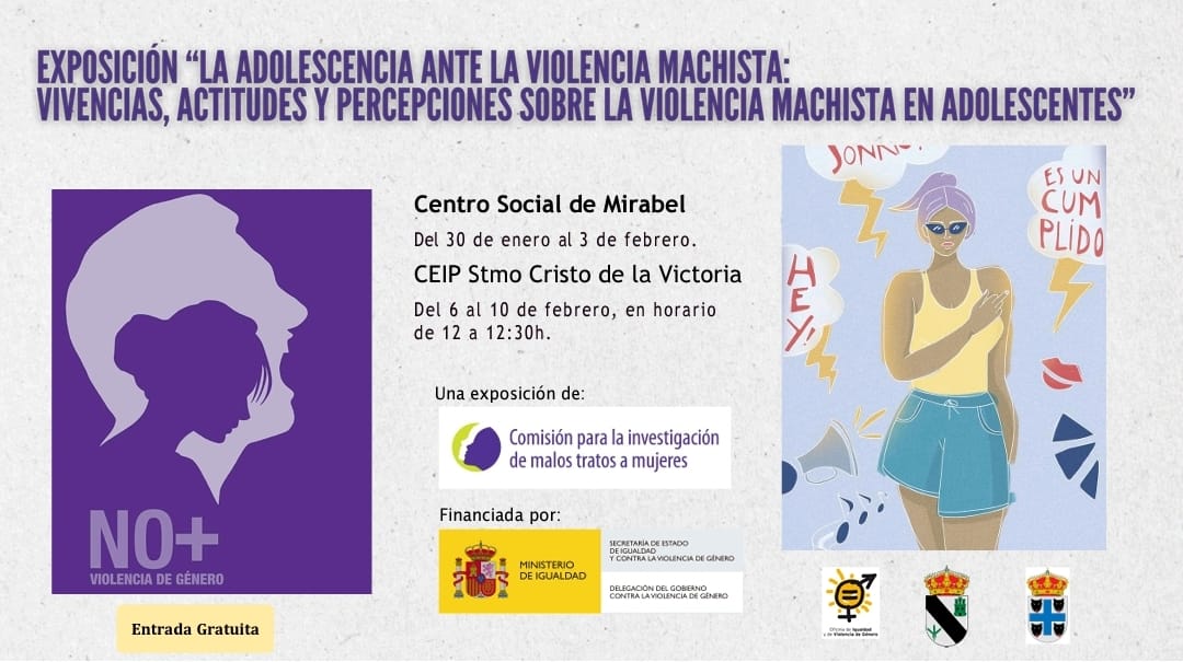 La exposición "La adolescencia ante la violencia machista: Vivencias, actitudes y percepciones sobre la violencia machista en adolescentes”, de la Comisión para la investigación de malos tratos de Mujeres, llega a la Mancomunidad Riberos del Tajo.